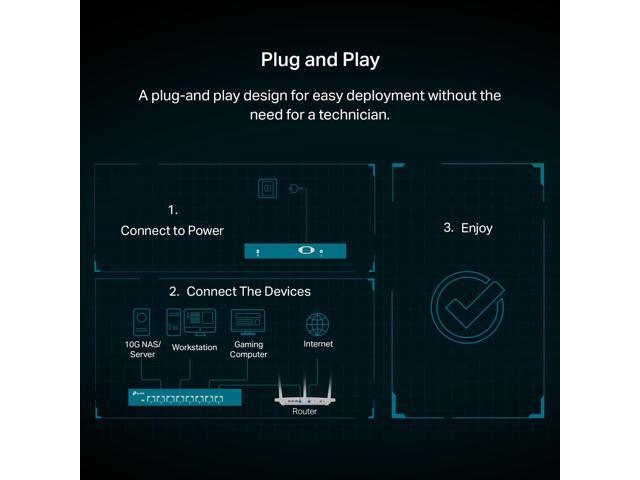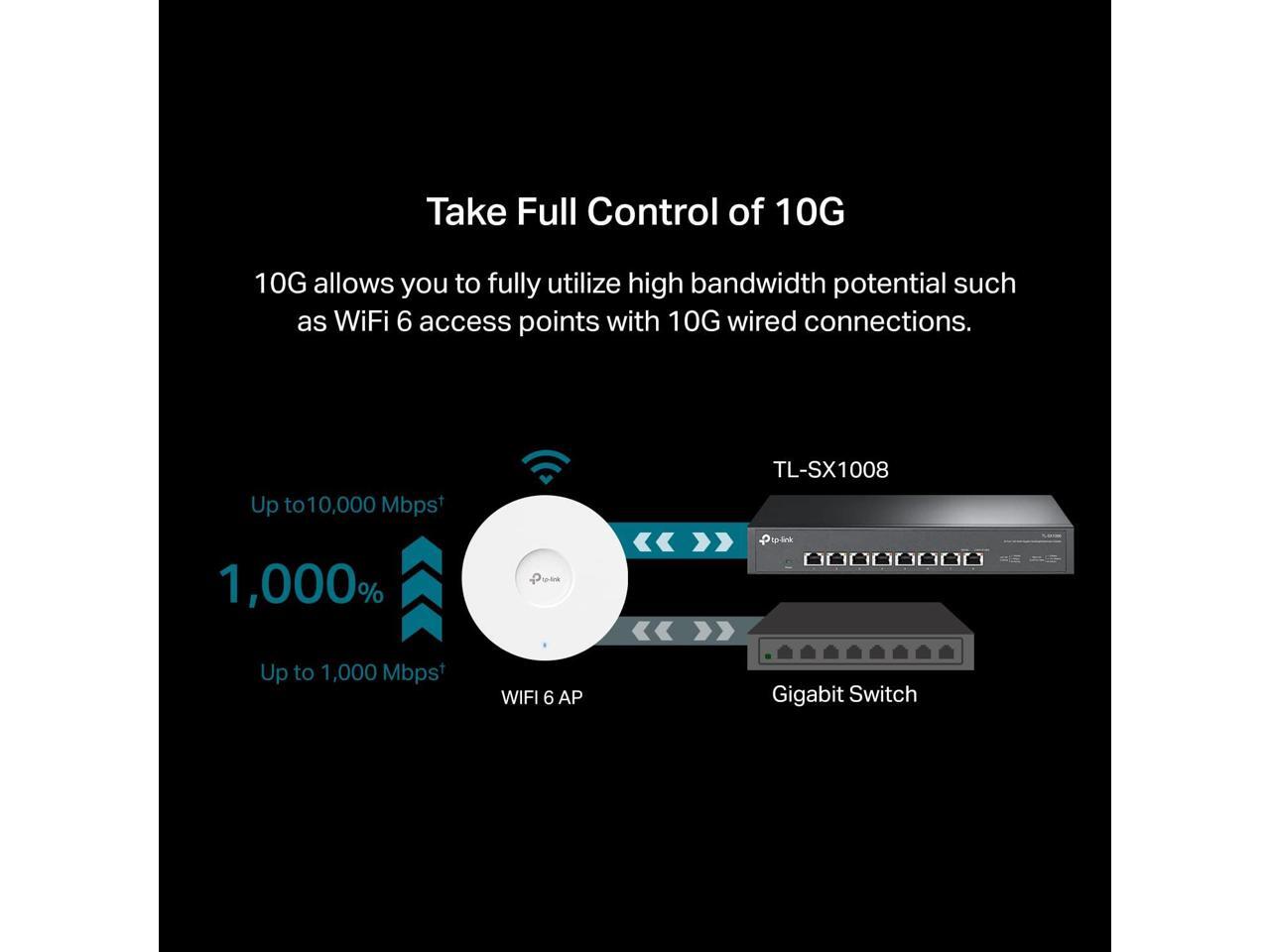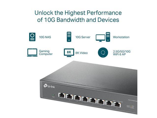 - Eight 10Gbps Ports for Lightning-Fast Connections:8× 10-Gigabit ports unlock the highest performance with 10G/multi-gig bandwidth and provide up to 160 Gbps of switching capacity.
