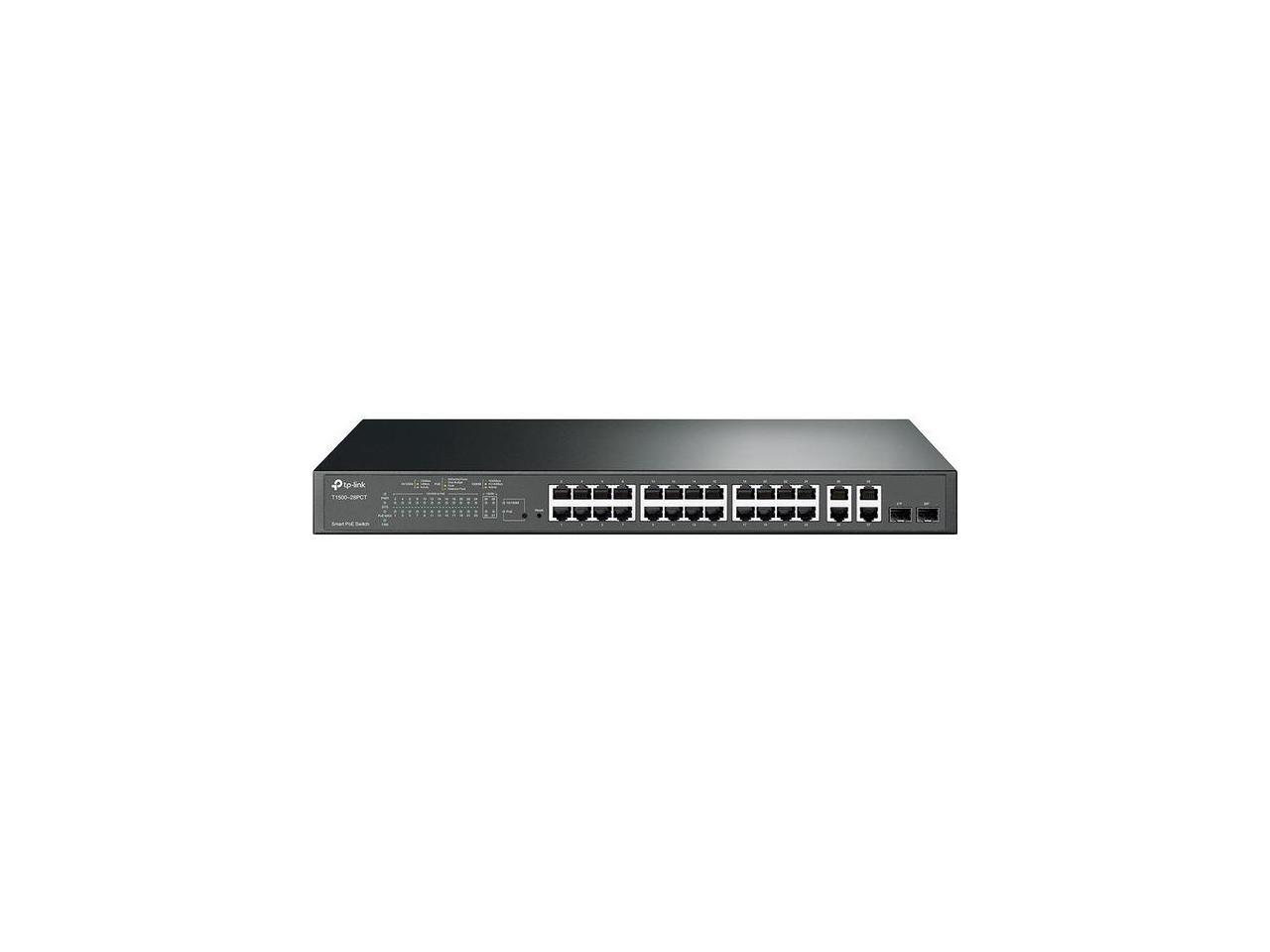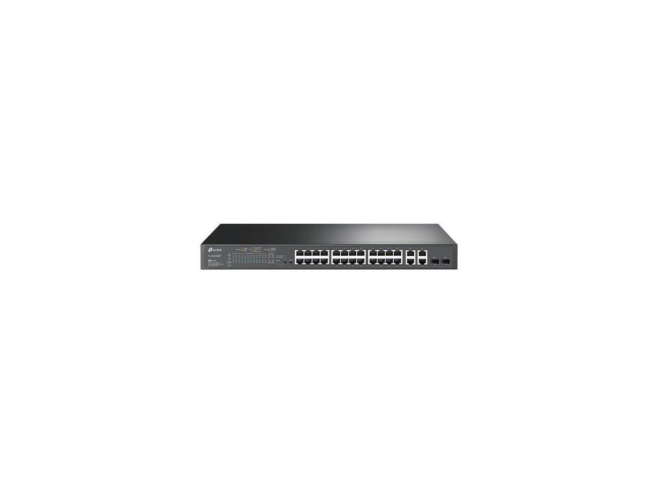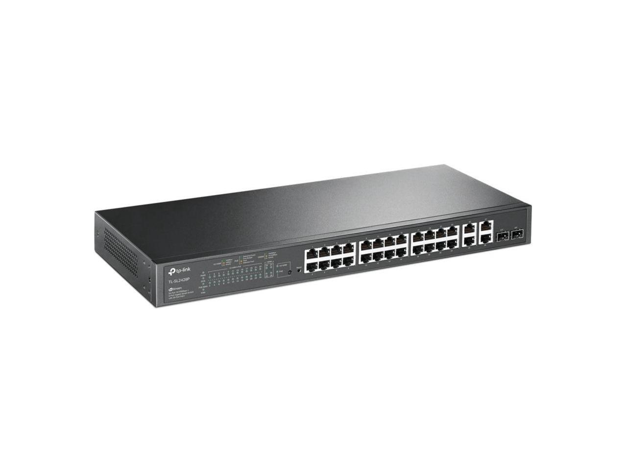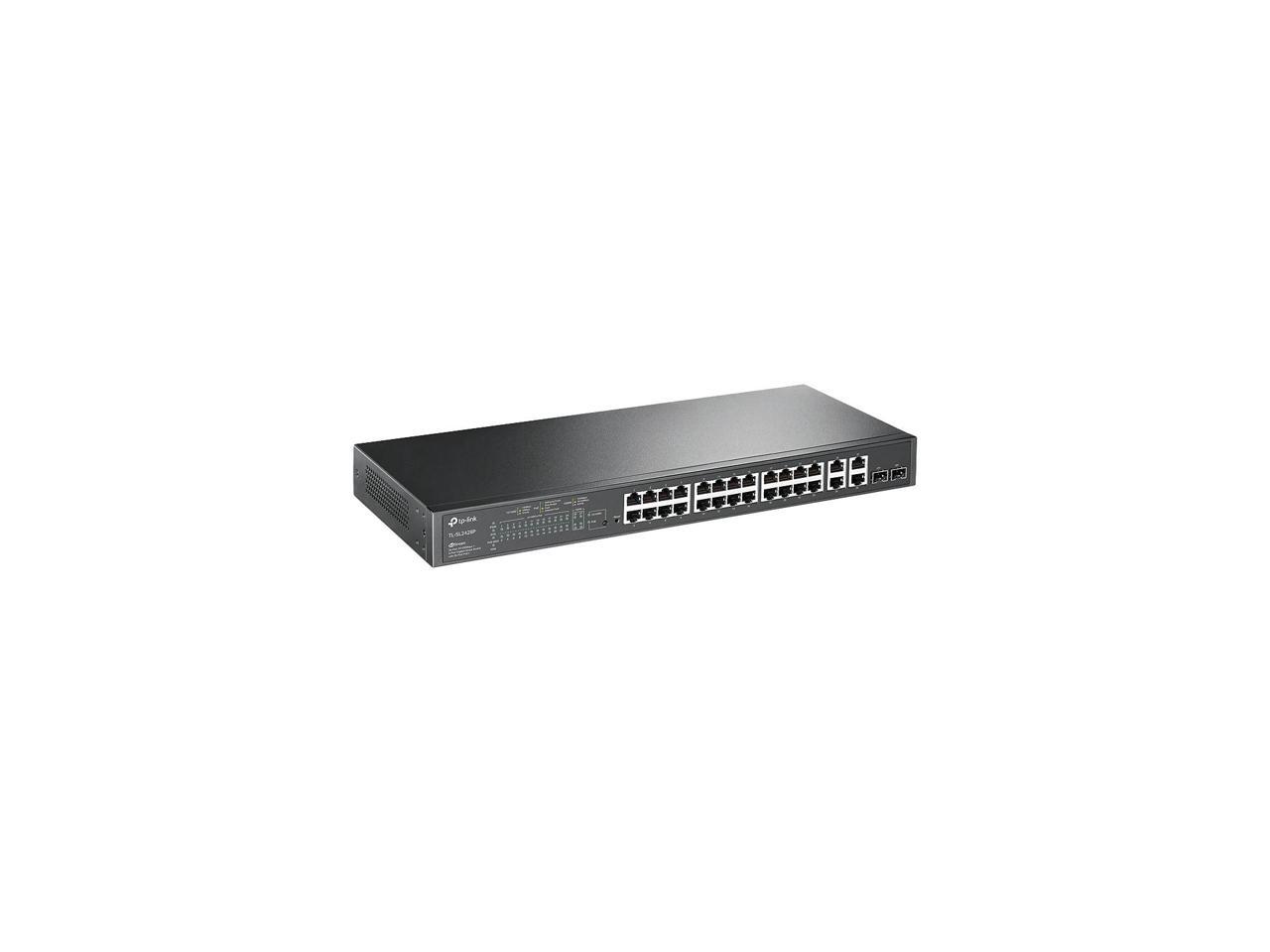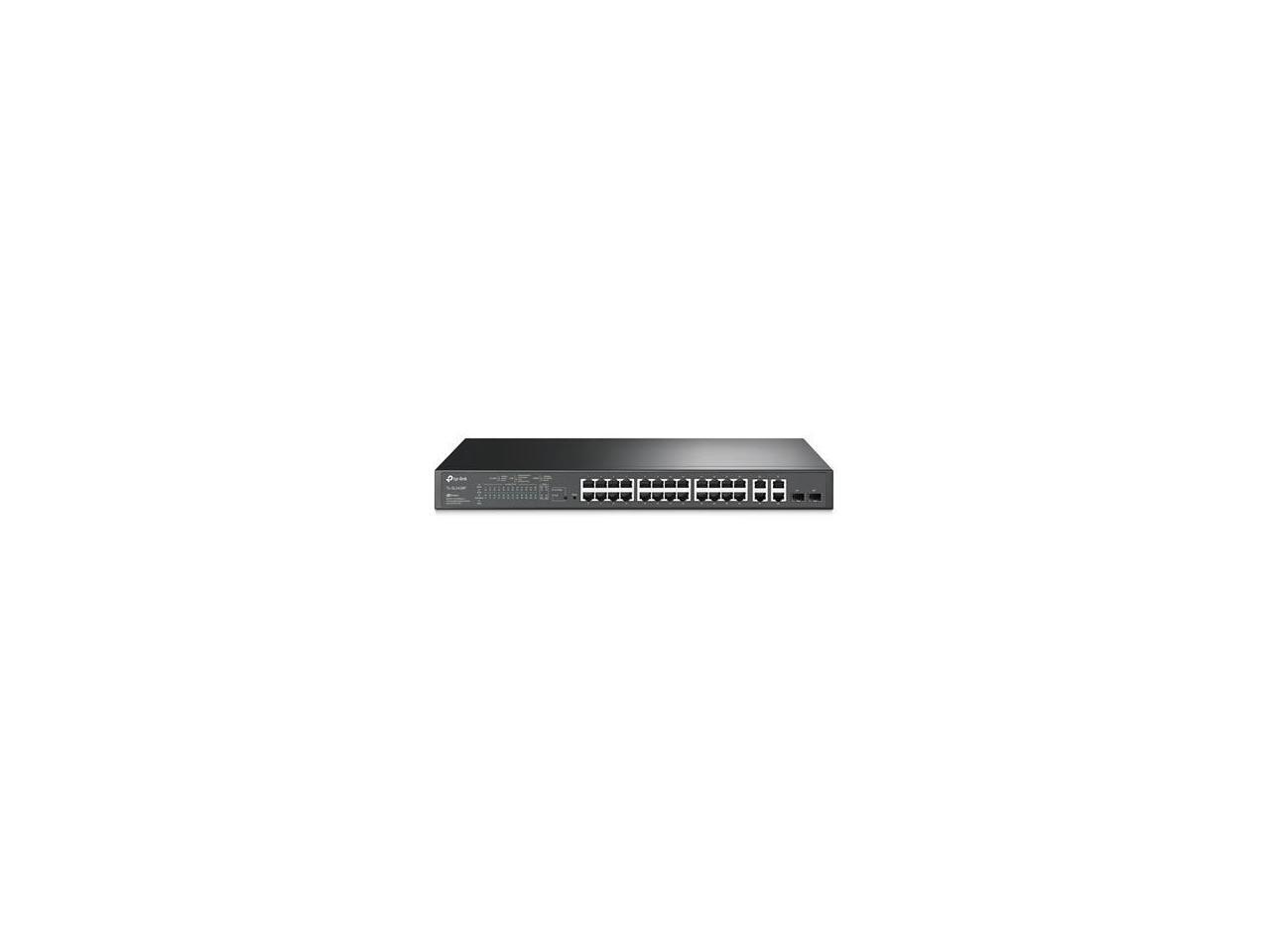 TP-Link 24-Port 10/100Mbps + 4-Port Gigabit Smart PoE+ Switch - 24 Ports - Manageable - 2 Layer Supported - 2 SFP Slots - 18.80 W Power Consumption - 250 W PoE Budget - Optical Fiber, Twisted Pair - P