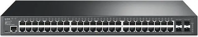 TP-LINK Jetstream Gigabit L2 managed switch T2600G-52TS provides 48 10/100/1000Mbps ports and 4 Gigabit SFP Slots The switch provides high performance powerful L2 and L2+ features like static routing enterprise-level Qu's and other advanced security strategies The IP-MAC-Port Binding and Access Control List (ACL) functions protect against broadcast storm ARP and Denial-of-Service (Do's) attacks etc Quality of Service (Qu's L2 to L4) provides enhanced traffic management capabilities to move your data smoother and faster Moreover the easy-to-use web management interfaces along with CLI SNMP RMON and Dual Image mean faster setup and configuration with less downtime For workgroup and departments requiring cost-sensitive L2 Switch and gigabit capability TP-LINK Jetstream 48-Port Gigabit L2 managed Switch T2600G-52TS provides you the ideal network solution