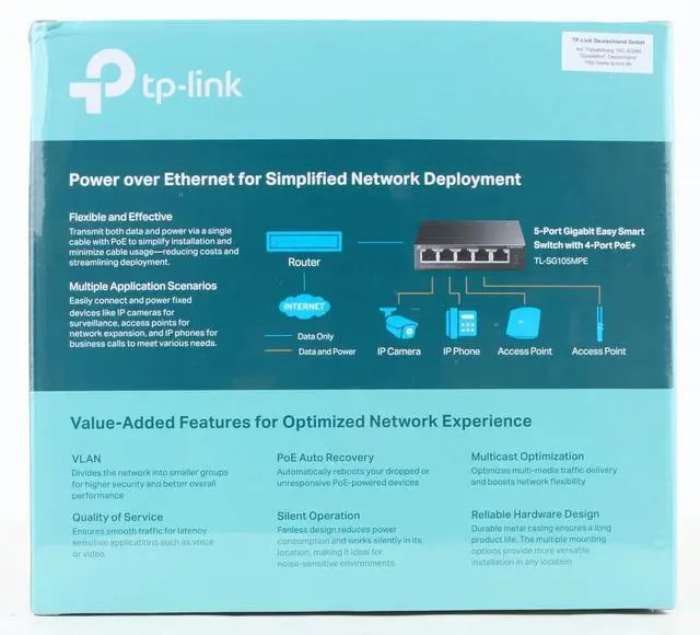[Features] 5x 10/100/1000 RJ45 Ports [802.3af/at PoE+ Port] Supports PoE+ power supply up to 4 x 30W of each port PoE Power Supply: Equipped with a PoE port up to 120 W in total [Plug & Play] Easy to use plug and play style