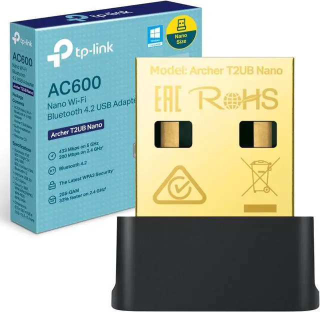 Archer T2UB Nano receives Wi-Fi signals on two separate bands. Choose the 2.4GHz band for surfing, email, and social media, or switch to the 5GHz band for gaming, streaming and large file downloads. T2UB Nano turns PC or laptop into Bluetooth enabled without Bluetooth. Simply connect your Bluetooth devices to your computer and enjoy it with ease. Supports WPA/WPA2/WPA3 encryption standards ensure your wireless connection is safe from intruders.