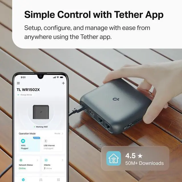 TL-WR1502X is our first Wi-Fi 6 travel router. With the latest Wi-Fi 6 technology, you can enjoy more capacity for connected devices and faster wireless speed on the road or at home. Equipped with a powerful CPU, two gigabit ports, one USB 2.0 port and Type-C powersupply, TL-WR1502X is designed to be an efficiently compact device. It's an ideal solution for the faster data rates and external storage.
