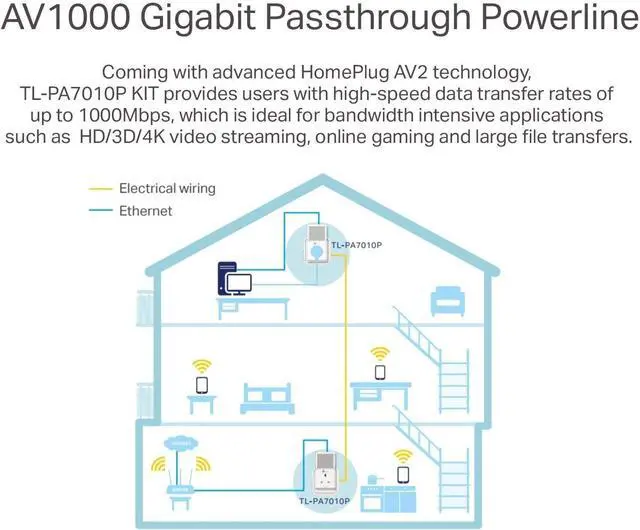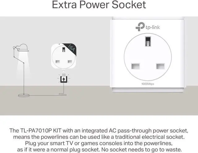 Powerline adapter provides up to 1000Mbps Ethernet over power. Ideal to be Ethernet extender who can easily go over the walls