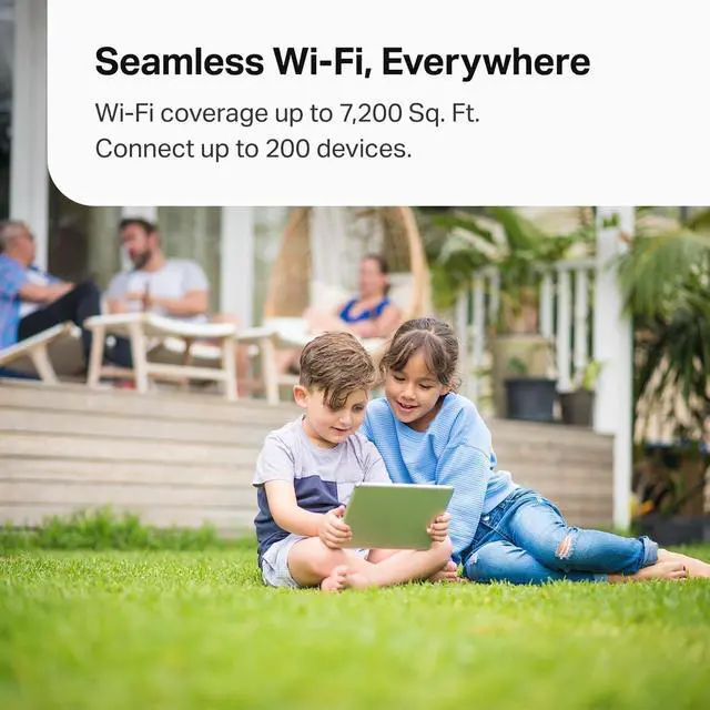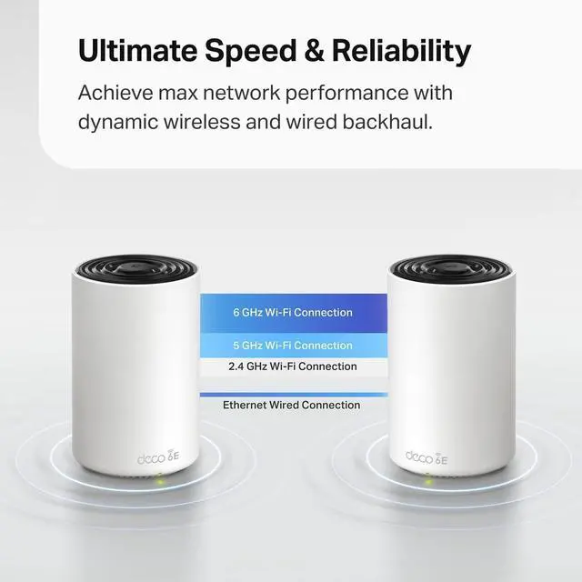 Take your home Wi-Fi experience to the next level with the Deco XE70 Pro! This innovative tri-band mesh system blankets your entire home (up to 7,200 sq. ft.) in lightning-fast, ultra-reliable Wi-Fi 6E. The game-changing 6 GHz band cuts through congestion, enabling capacity for more devices at faster speeds with smoother connections. Stream 4K/8K content flawlessly, enjoy lag-free online gaming, and reliably connect up to 200 devices with ease. Seamlessly roam anywhere around your home no Wi-Fi dead zones or connection drops. Plus, enjoy the fastest connectivity possible with tri-band Wi-Fi speeds of up to 4.9 Gbps and 2.5-gigabit wired connectivity. Experience the future of home Wi-Fi with Americas #1 Consumer Wi-Fi Brand.
