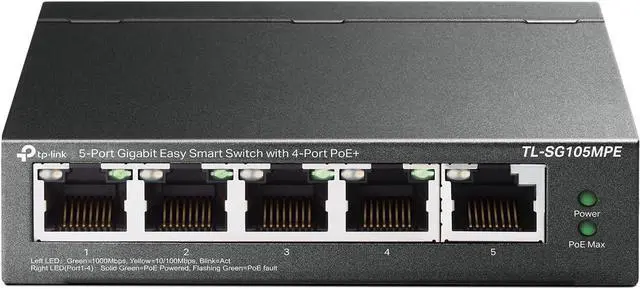 TP-Link TL-SG105MPE | Easy Smart Managed | 4 PoE+ Ports @120W, w/ 1 Uplink Gigabit Port | QoS, Vlan, IGMP & LAG | Fanless | PoE Auto Recovery | 3 Year Protection