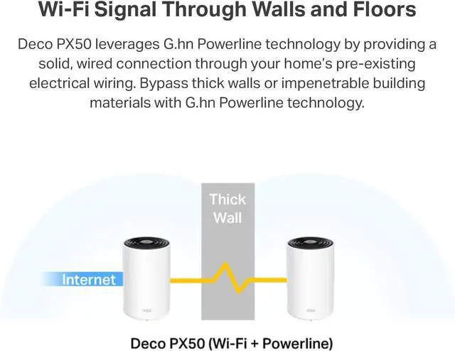 Better than Dual-Band Mesh WiFi: Powerline and wireless connections work together to transmit data between Deco units. PX50 delivers phenomenal speeds compared with traditional mesh WiFi
