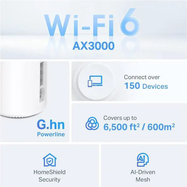Wi-Fi 6 Powerline Mesh: Deco PX50 is a WiFi 6 G.hn powerline mesh system that combines the latest Wi-Fi and PLC technologies.