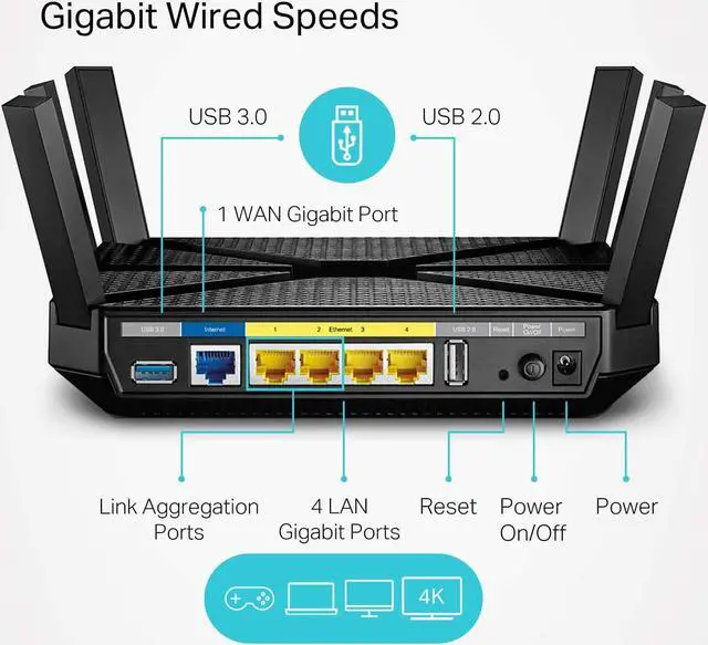 Gigabit Wired Speeds--1 WAN and 4 LAN gigabit ports bring wired speeds to the maximum and Link Aggregation even doubles it to 2 Gbps.