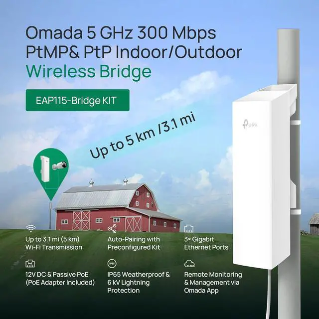 : Utilize 5GHz, Ideal for long-range wireless transmission up to 3 miles, 5km
