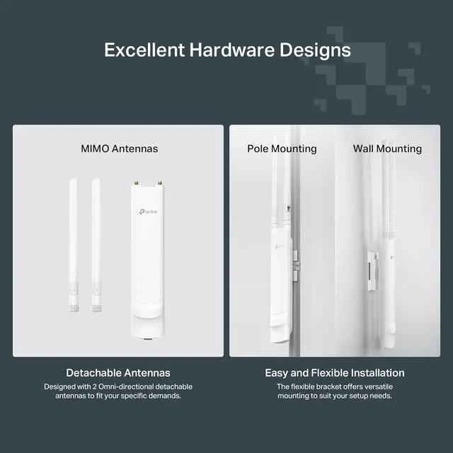 / - The durable, weatherproof enclosure protects the access point against harsh outdoor conditions and provides stable wireless coverage up to 200m+ range at 2.4GHz and 300m+ at 5GHz in outdoor settings. Discreet appearance can also fit with any indoor scenarios.