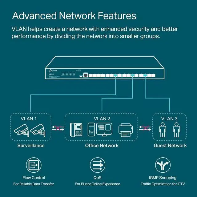 Enhance Network SecurityAdvanced security features include 802.1Q VLAN, IP-MAC-Port binding, ACL, Port Security, DoS defend, Storm control, DHCP Snooping, 802.1X radius authentication and more.