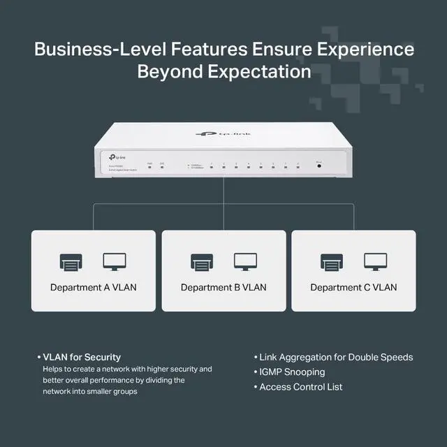 Advanced features such as static routing, VLAN, ACL and IGMP Snooping