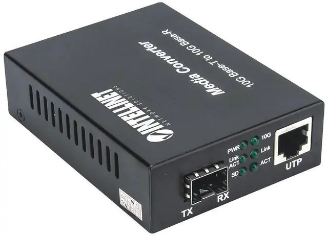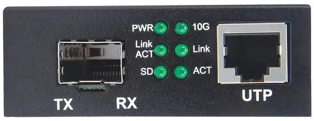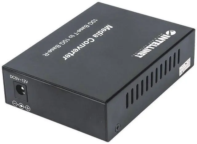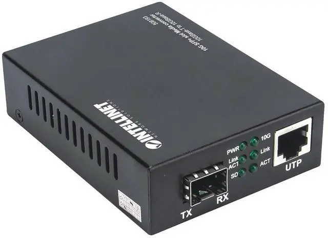 The Intellinet Network Solutions 10GBase-T to 10GBase-R Media Converter offers the network designer a device for migration from copper-based Ethernet to Fiber Ethernet. Now, migration or expansion of existing networks can be achieved with minimum cost and complexity. The converter is completely transparent to the network, so the network performs exactly the way it did before, only now it can support both copper and fiber media. And with a super-fast 10 Gbps connection, network speed stays constant for high-bandwidth data transfers. - One 10 GB SFP+ port (requires transceiver, separately available from Intellinet Network Solutions) - Supports IEEE802.3u, 10GBase-T and 10GBase-FL - Supports full-duplex mode or half-duplex mode operation with autonegotiation