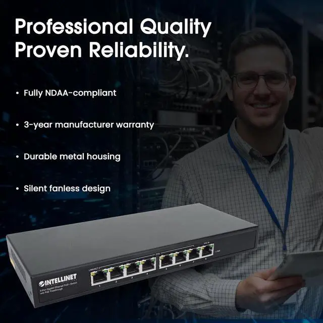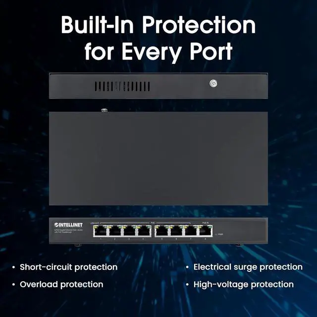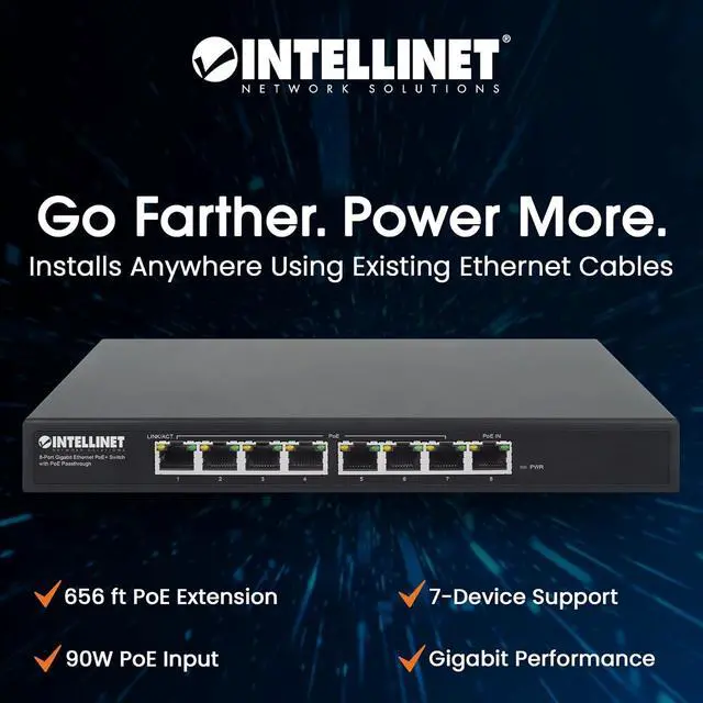 Power and Data in One: This switch can supply power and data to up to seven devices simultaneously through existing network cables. No need for extra wiring or outlets.
