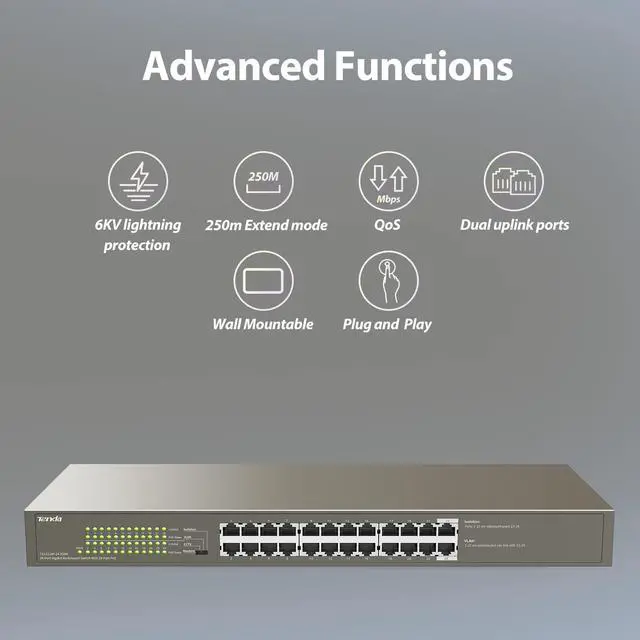 6KV Lightning ProtectionProfessional integrated lightning protection circuit enables all ports to provide IV-class lightning protection, effectively decreasing the damage rate to the ports by lightning surge.