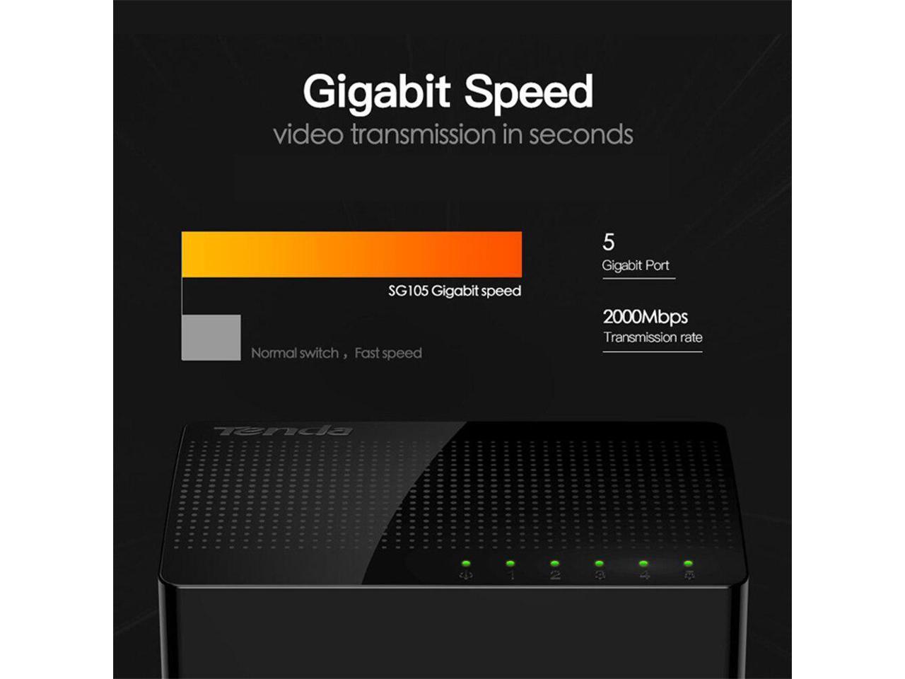 Tenda 5 Port Gigabit Ethernet Network Switch - Ethernet Splitter | Plug & Play | Fanless | Sturdy Metal w/ Shielded Ports | Traffic Optimization | Unmanaged | Limited Lifetime Protection(SG105M)