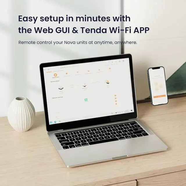 1Monthly Report2Speed Test3Special Care4Remote Management5Wi-Fi Setting Wi-Fi Rate2.4GHz: 574Mbps (802.11ax, HE160); 5GHz: 4804Mbps (802.11ax).................................................Internet connection speeds depend on your internet service provider. Maximum wireless signal rates are derived from IEEE standard 802.11 specifications. Specifications assume wired Ethernet connection, experienced speeds may vary based on network configuration.Wired ConnectivityThree auto-sensing Gigabit Ethernet ports for WAN/LAN connectivity.Type2-pack: Router (Every node can connects to modem as primary router). Supports blind plugging of network portsWi-Fi CoverageUp to 5600sq.ft².................Coverage estimates are based on normal use conditions. Actual range and performance can vary, including due to factors such as interference, device usage, building materials, thickness of wall and obstructions. Throughput and coverage estimates are a configuration reference, not a performance warrant.Smart home connectivityWorks with Alexa and devices that support Wi-Fi connection(No Z-Wave/Zigbee protocol)Admin PageDefault Access Address: tendawifi.com or 192.168.0.1Troubleshooting MethodsFrequently asked questions are addressed through the FAQ in the Product guides and documents on this page. If the FAQ does not solve your problem, or if you have a pre-purchase enquiry you can ask for support via email. Seamless Roaming for Everyone Get the best Wi-Fi all around your home Tenda Nova Mesh WiFi 6 AX5400