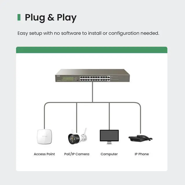 PoE powered switch delivers a combined PoE power output of 135W and up to 30W per port, to supply power and exchange data to WiFi 6 Access Points, IP Cameras, IP Phone, HD Securty,etc