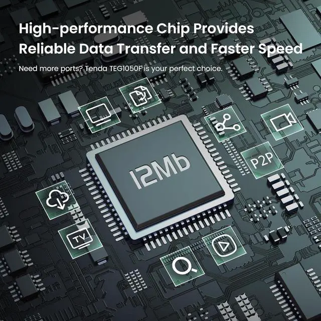 : With a 12 Mb buffer, it ensures no packet loss, smooth video streaming, and efficient large file transfers, ideal for high-traffic scenarios