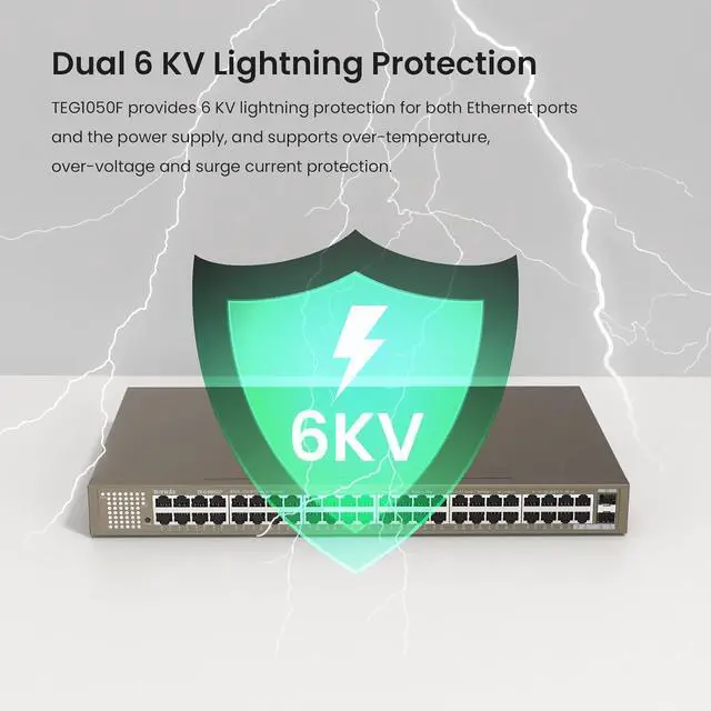 : Built-in 6KV lightning protection for all Ethernet ports and power supply ensures stable, reliable operation even in harsh environments