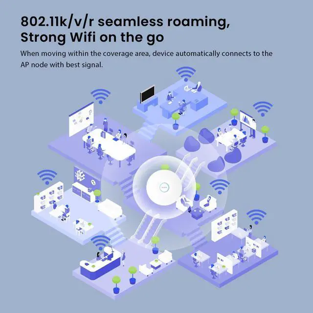 : Supports 802.11k/v protocols, enabling devices to switch automatically to the strongest access point without dropping video calls or online meetings.