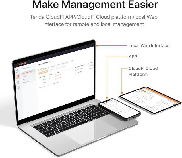 Cloud & Local Management Easy configuration via CloudFi app, web dashboard, or local web interface. Monitor, optimize, and manage multiple APs anytime, anywhere.