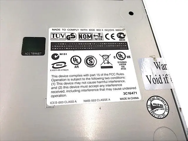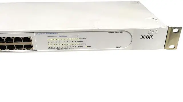 Package Includes: 13COM Baseline 3C16471 2024 10/100 24-Port Switch NO Power Cord Included