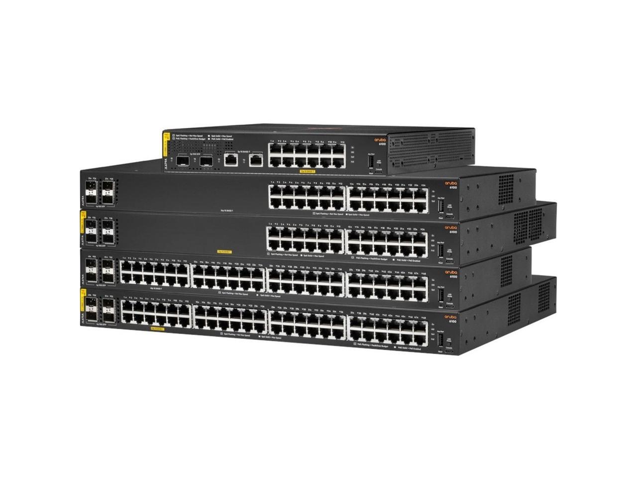 Aruba 6100 Ethernet Switch - 12 Ports - Manageable - 2 Layer Supported - Modular - 139 W PoE Budget - Optical Fiber, Twisted Pair - PoE Ports - 1U High - Wall Mountable, Rack-mountable, Surface Mount