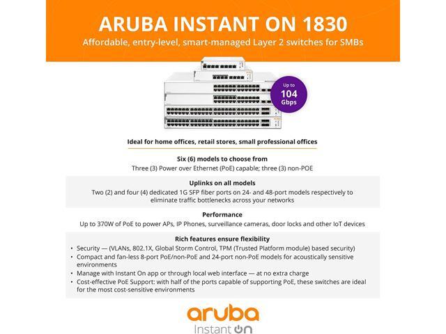 Management: Simplified cloud management from app or web browser with no recurring cost - The Aruba Instant On mobile app allows you to set up, manage, and monitor Instant On switches and Access Points directly from your phone, from anywhere. Guided step-by-step instructions to install devices to get your network up and running quickly – no technical expertise required. Alternative integrated traditional full local web interface for advanced configuration with quick start-up wizard, SNMP