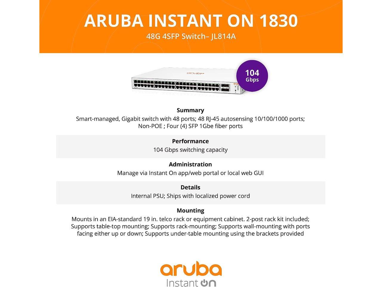 Aruba Instant On 1830 48-Port Gb Smart Switch - 48x 1G | 4X SFP | US Cord (JL814A#ABA)