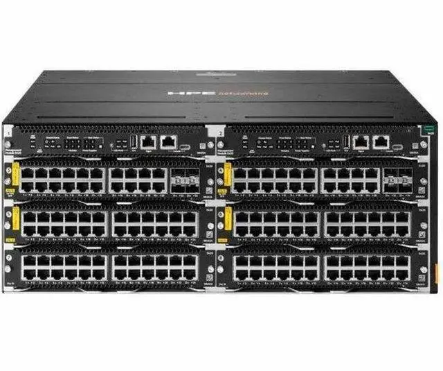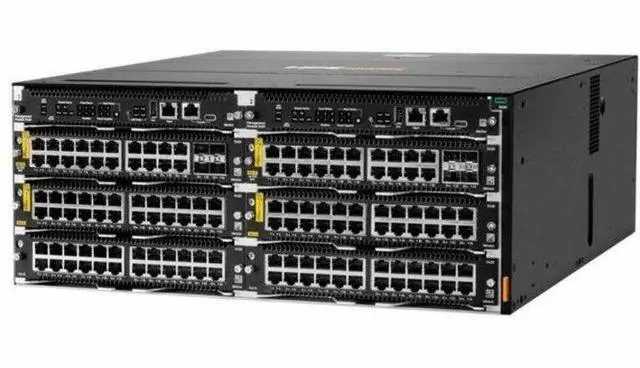 A powerful Gen7 ASIC architecture delivers performance and extensive feature support with flexible programmability for the tomorrow applications. This advanced modular 4U chassis switch offers up to 960Gbps with low latency, 6 half-width line card slots, VSX Live Upgrade, and HPE Smart Rate 10GbE up to 90W Class-8 PoE with BGP/OSFP/PIM support. Featu