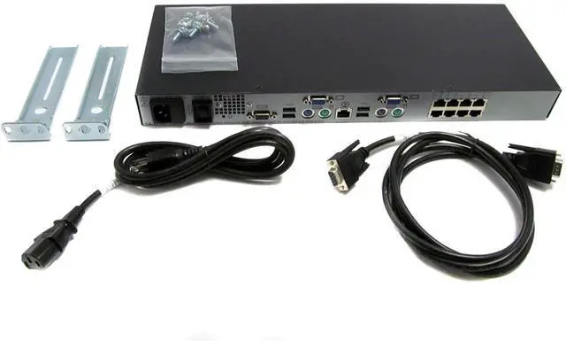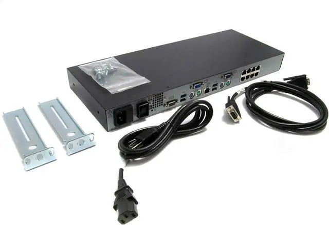 Connections: 8x KVM RJ-45, 4 x USB, 1x RS-232 DB-9 console, 2x VGA, 2x PS/2 Mouse, 2x PS/2 Keyboard