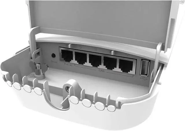 OmniTik 5 ac The OmniTik 5 ac from Mikrotik features five Gigabit Ethernet ports and support for 802.11ac. Its equipped with a powerful 720MHz CPU, 128MB RAM, high power 1,300mW 802.11a/n/ac Dual Chain wireless (support for AC as well as backwards compatible with regular 802.11a/n CPE) and comes with a new design weatherproof outdoor enclosure, two integrated 7.5dBi 5GHz omni antennas, a power supply, a PoE injector and a mounting kit.