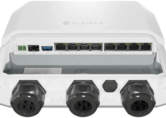 Powerful Performance with RouterOS v7 Quad-core ARM CPU, 1 GB RAM, and advanced software features including MPLS, VPLS, PPPoE, hardware bridging, and more for advanced ISP-grade networking.