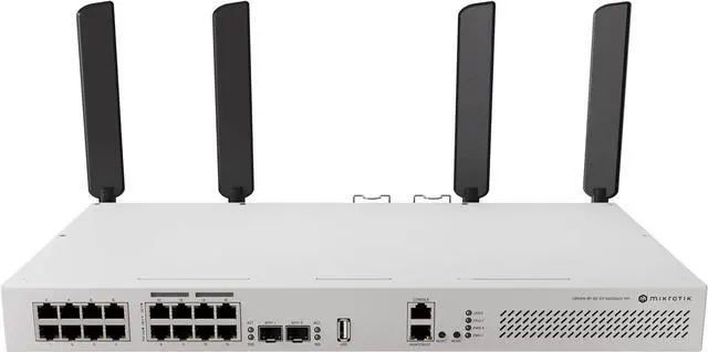 MikroTik CRS418-8P-8G-2S+5axQ2axQ-RM-US Cloud Router Switch 418-8P-8G-2S+5axQ2axQ-RM with RouterOS L5, Rackmount Case, US version The Wi-Fi version of CRS418 with our strongest 4x4 MIMO Wi-Fi 6 L3 HW offloading, quad-core 2
