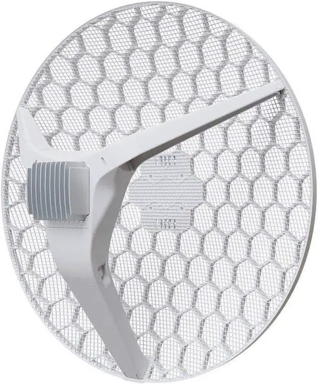 The powerful 27 dBi 5 GHz / 18 dBi 2.4 GHz antenna will provide connection with link distance up to 40 km. The grid design ensures protection against wind. Antenna element is built into the wireless unit no loss on cables