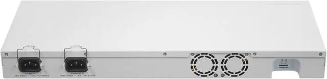 The unit is equipped with dual power supplies built in for redundancy (if one power line fails, the other one will take over automatically)