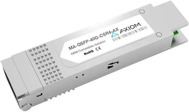 Axiom QSFP+ Transceiver Modules are 100% compatible in all OEM applications. They are pre-configured with an application specific code to meet the requirement set forth by the router and switch OEMs. Axiom compatible transceivers perform, fit and function identically when compared to Original Transceivers. Axiom brand transceivers also function with other brands within the same network. 100% Guaranteed Compatibility in all OEM applications Part number and unique product serialization; Eliminates any network communication conflicts and provides easy identification Fully compliant with the multi-sourcing agreement (MSA) which enables them to work in all MSA compliant platforms Original Equipment Manufacturer (OEM) names may be registered trademarks of the respective OEM, and the OEM has neither authorized nor sponsored the use of its trademark or trade name. All OEM names are used for comparative purposes only.