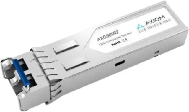 Axiom SFP Transceiver Modules are 100% compatible in all OEM applications. They are pre-configured with an application specific code to meet the requirement set forth by the router and switch OEMs. Axiom compatible transceivers perform, fit and function identically when compared to Original Transceivers. Axiom brand transceivers also function with other brands within the same network. 100% Guaranteed Compatibility in all OEM applications Part number and unique product serialization; Eliminates any network communication conflicts and provides easy identification Fully compliant with the multi-sourcing agreement (MSA) which enables them to work in all MSA compliant platforms Original Equipment Manufacturer (OEM) names may be registered trademarks of the respective OEM, and the OEM has neither authorized nor sponsored the use of its trademark or trade name. All OEM names are used for comparative purposes only.