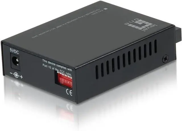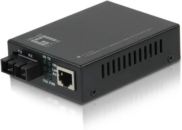 LevelOne FVT-2001 Maximum data transfer rate: 100 Mbps, converter input interface: 10Base-T,100Base-TX, converter output surface: 100Base-FX. Optical cable connector: SC, Transmission technology: Wired Maximum transmission distance: 2000 m, wavelength: 1310 nm, cable mode structure: multi-mode. LED indicators: activity, link, product colour: black, country of origin: China. Input voltage: 5V, Input current: 1A Transmits data from 10/100Base-TX copper to fibre optic interfaces. Multimode fibreglass with SC connector for transmission up to 2 km. Integrated LFP (link fault pass-through) technology. IEEE 802.3x monitoring protects against lost packages and ensures reliable data transmission. Toggle switches for customized configuration. Supports low time delay transmission. Supports transfer extra long Packages up to 1.6 kB -10°C ~ 55°C operating temperature range.
