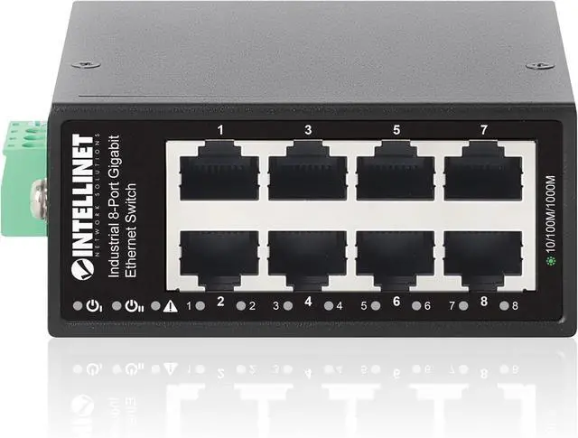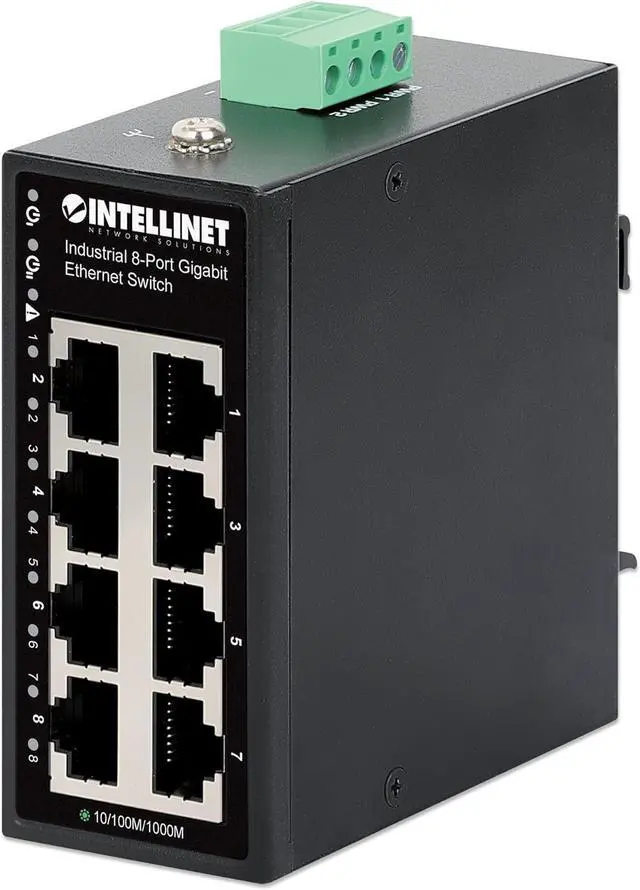 Versatile Connectivity: Equipped with eight Gigabit RJ45 Ethernet ports, this switch allows for seamless data transmission across connected devices, making it ideal for various industrial applications.