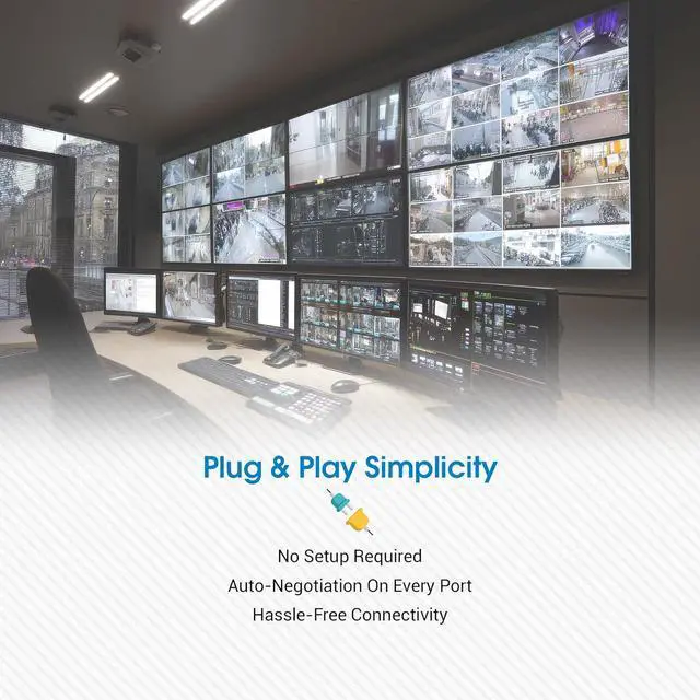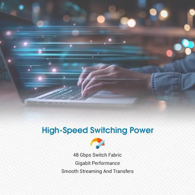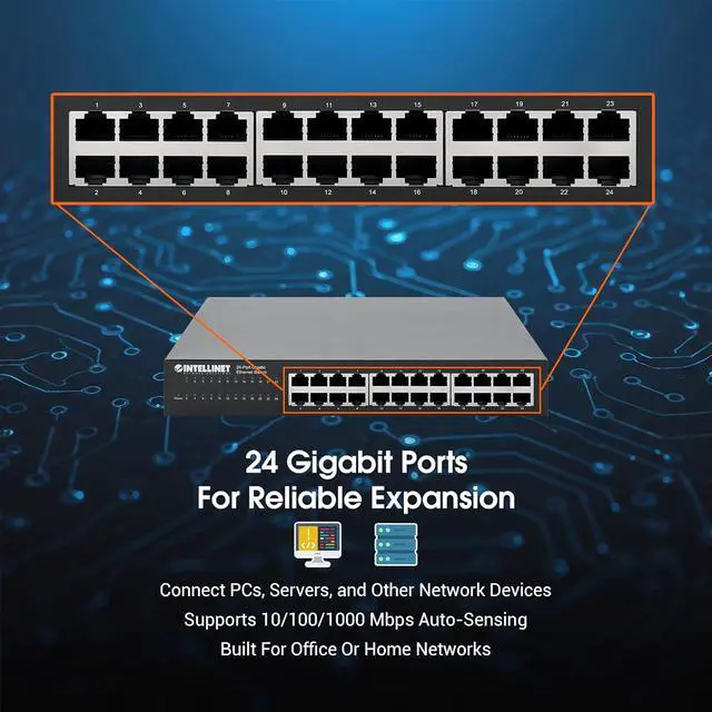 24 GIGABIT PORTS: 24 x 10/100/1000 sensing ports automatically detect device speed capabilities and optimal internet network speeds. Supports any combination of 10, 100 or 1000 Mbps network devices. Switch features a switching capacity of 48 Gbps and is fully NDAA-compliant.
