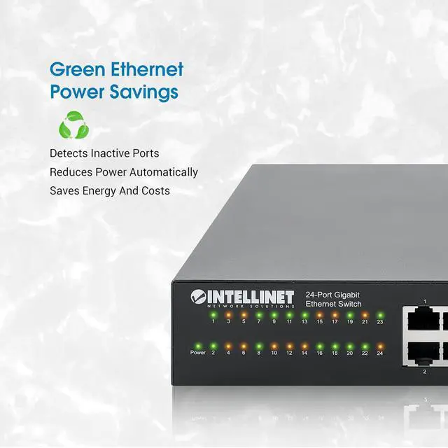 ENERGY SAVING TECHNOLOGY: Energy Efficient Ethernet compliance (IEEE802.3az); Green Ethernet technology saves deactivates unused ports and adjusts power levels based on the cable length.