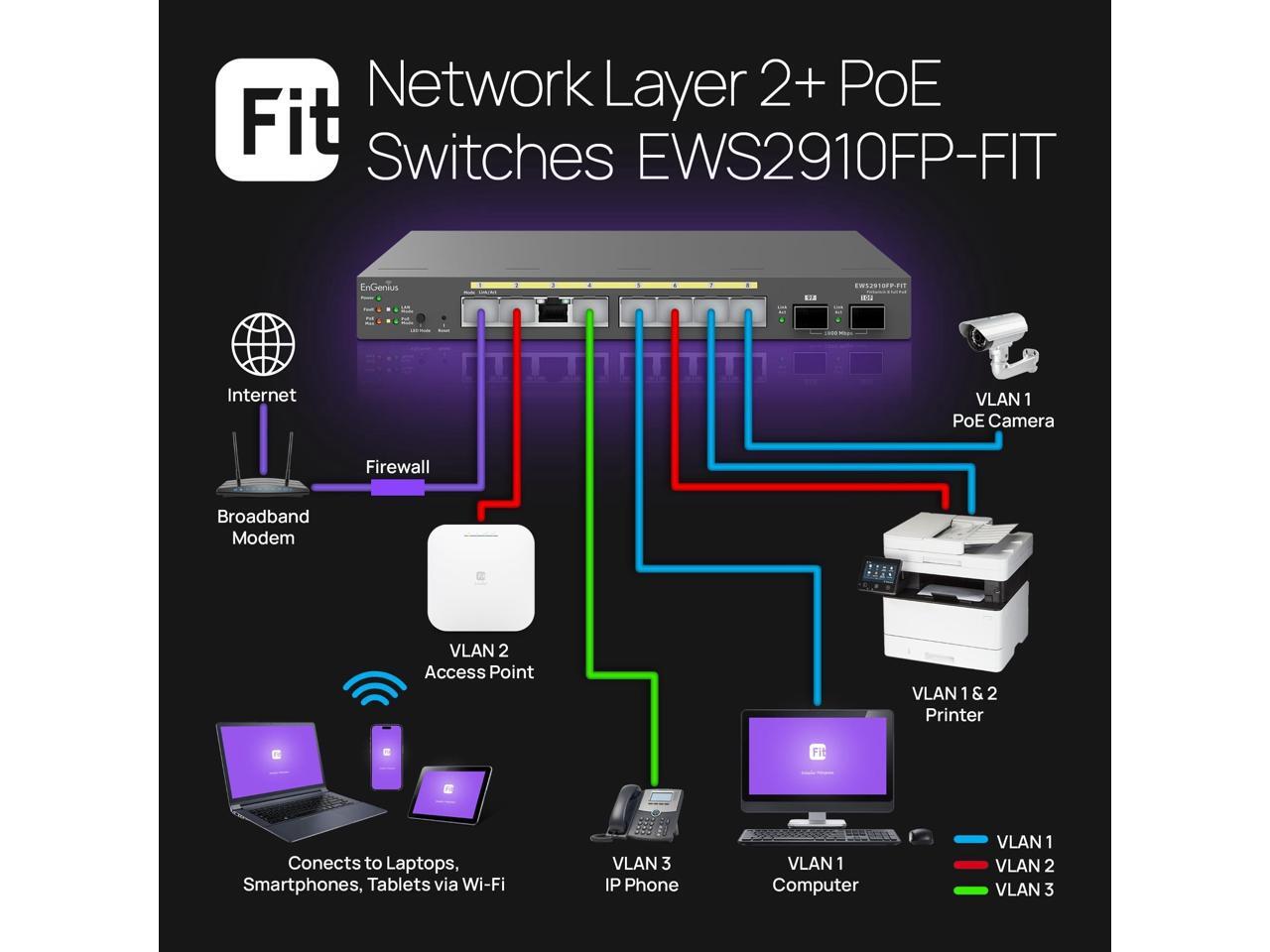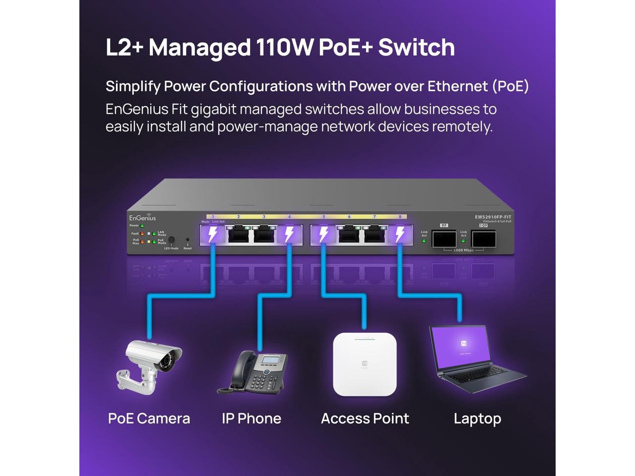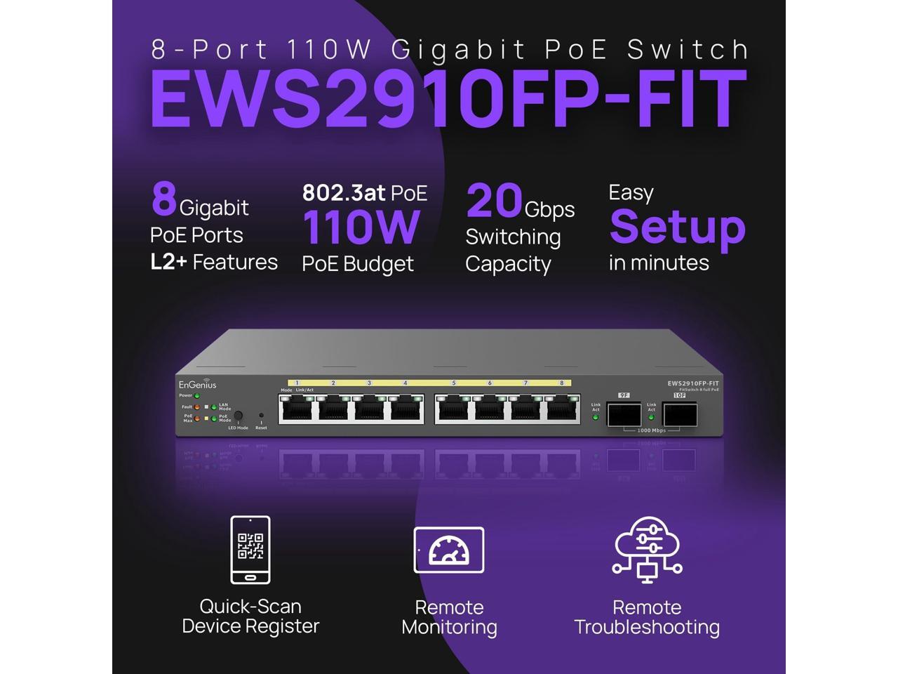 EnGenius Fit Gigabit 8-Port 110W PoE+ Switch w/2 SFP Ports EWS2910FP-FIT