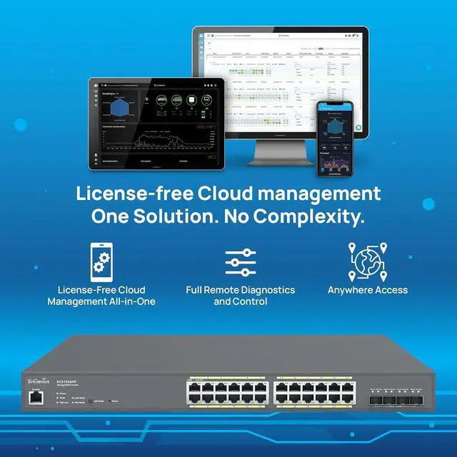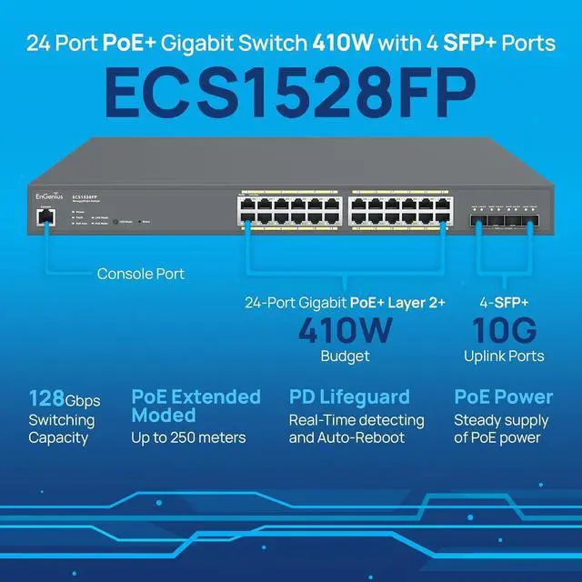EnGenius Cloud ECS1528FP 24-Port Gigabit PoE+ Switch with 410W Budget & 4 SFP+ Ports