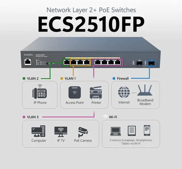 802.3af/at PoE+ capable on all ports with a 240W PoE budget