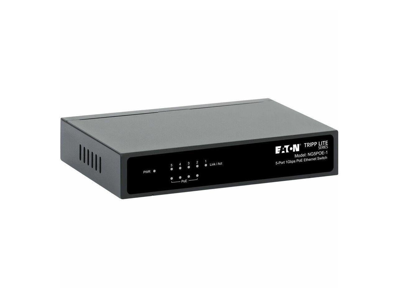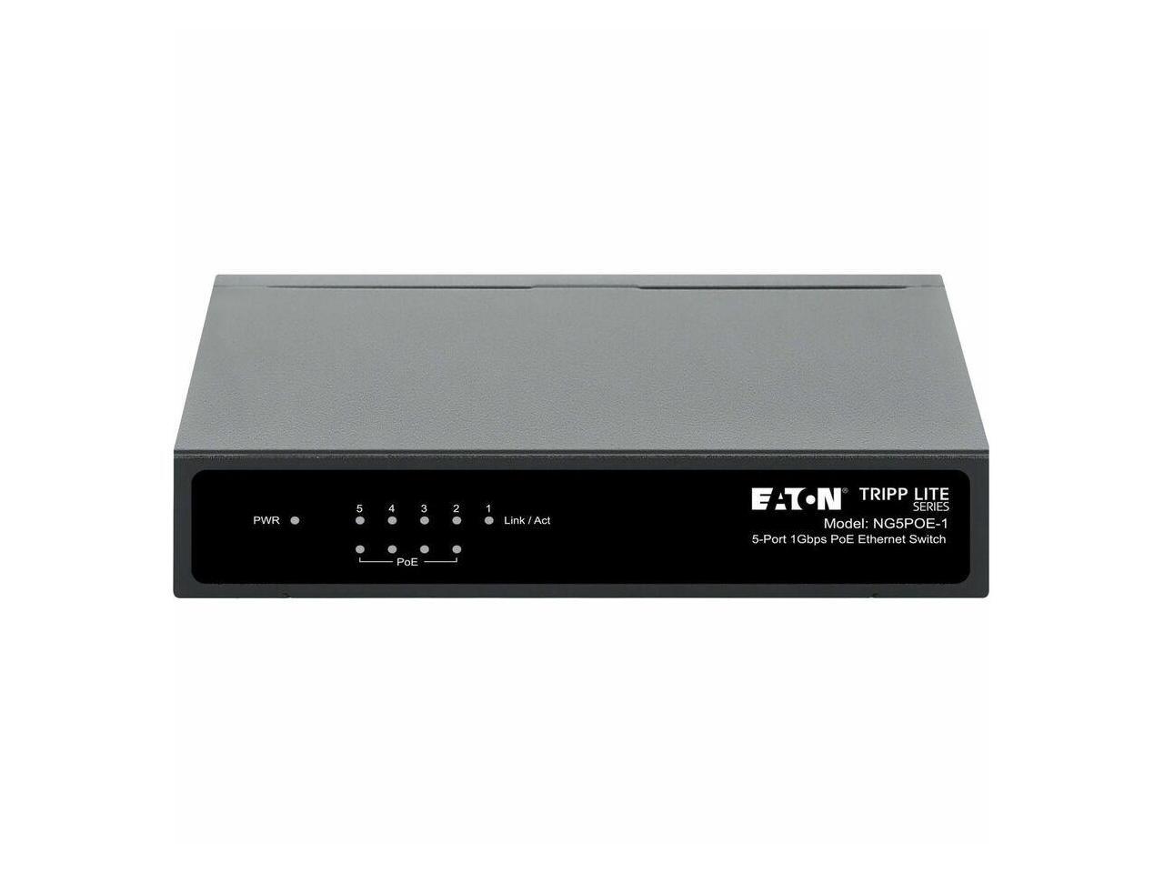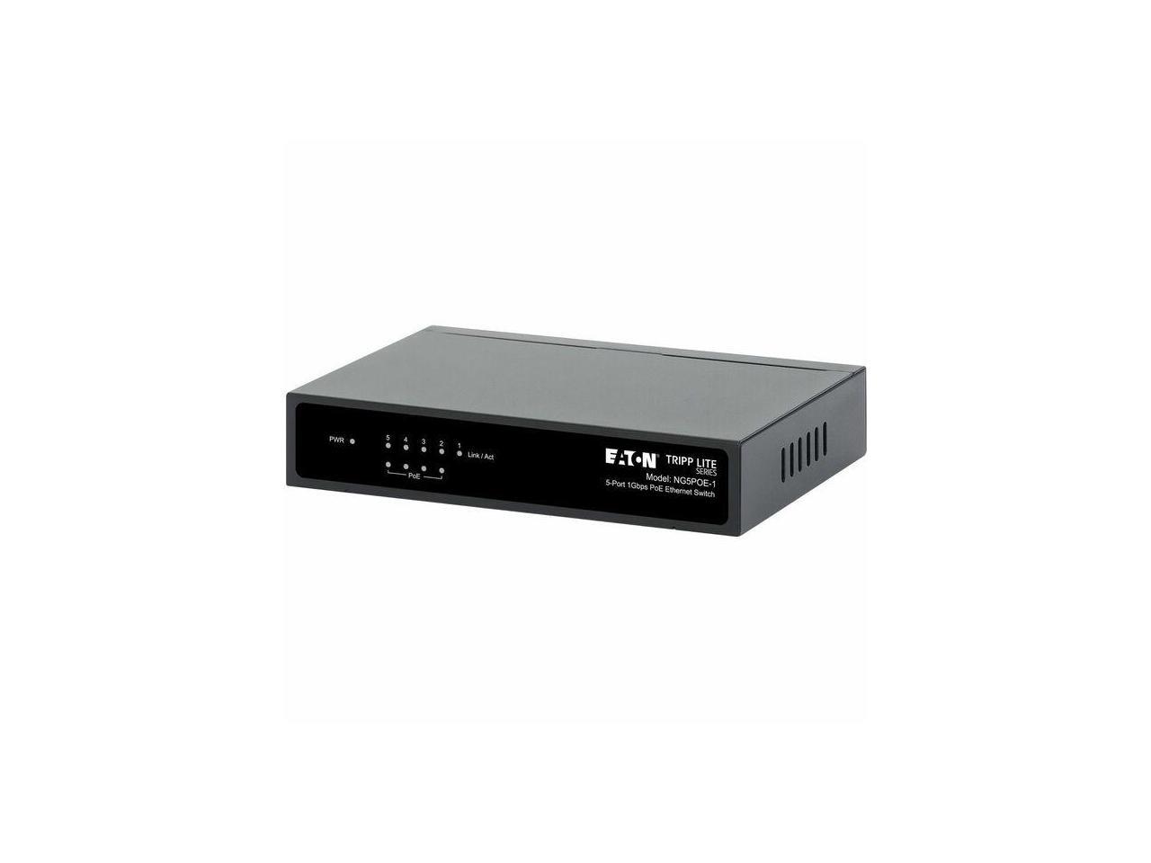 Eaton Tripp Lite Series 5-Port 10/100/1000 Mbps PoE-Powered Desktop Gigabit Ethernet Unmanaged Switch with PoE+ Pass-Through, 65W, Metal Enclosure - 5 Ports - Gigabit Ethernet - 10/100/1000Base-T - 2