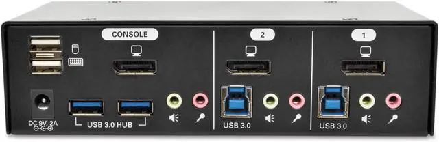 All necessary cables are included. The B004-DPUA2-K supports digital video resolutions up to 2560 x 1600 (including 1080p), 2-channel stereo audio and data transfer rates up to 5 Gbps. The built-in DDC emulator sends the console monitors EDID information to all connected computers to ensure top video quality and prevent any delay or change in video resolution when switching computers.