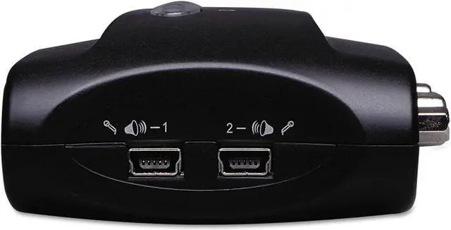 Speaker and mic connections allow sharing of audio components with independent switch.