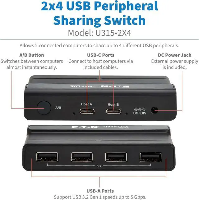 EASY-TO-USE: Connect the included USB cables to the switch and host computers. Host cables have USB-C connectors with optional USB-A adapters. Power cable is included but only needed if connected devices require more power than the USB host provides.